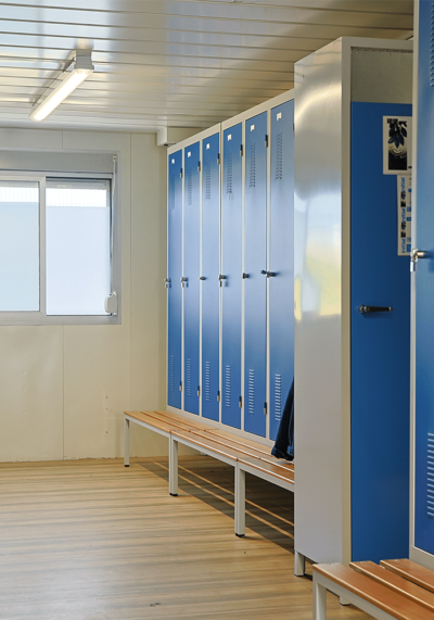 Grâce à la construction modulaire, l’installation des vestiaires est rapide et réalisée avec un minimum de perturbations sur le site.